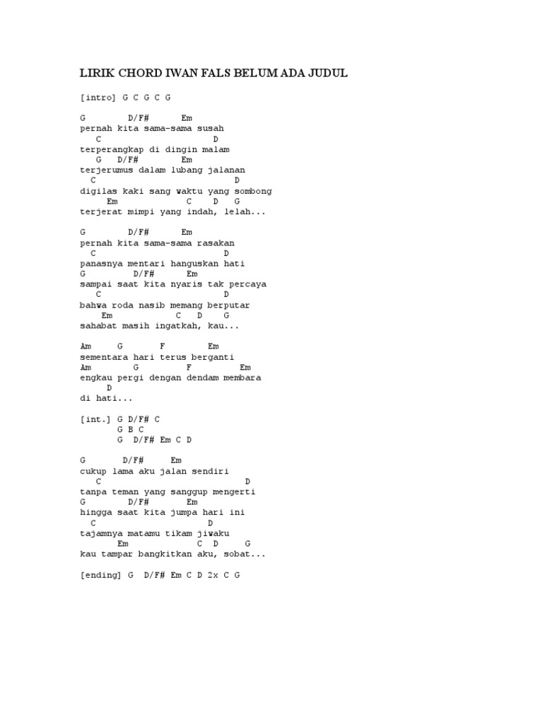 Kunci Chord Gitar Dan Lirik Lagu Belum Ada Judul Iwan